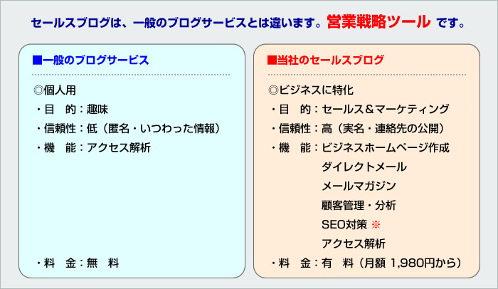 セールスブログは、通常のブログの使いやすさに「セールス&マーケティング」機能をプラスした
