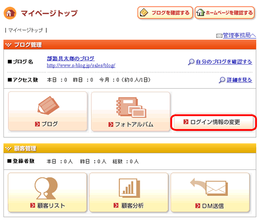 ・ 「ログイン情報の変更」をクリックします。