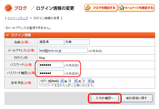・変更したら、「入力の確認」をクリックします。