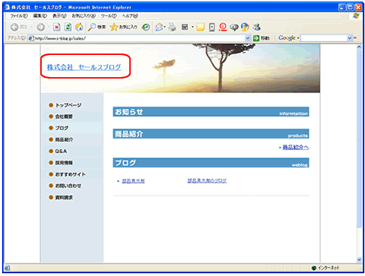 サイトタイトルには登録された会社名が表示されています。
