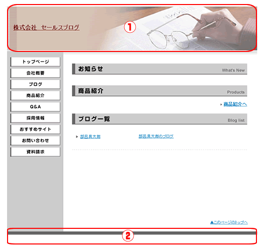 | サイトのタイトル、説明などを表示します。 | |