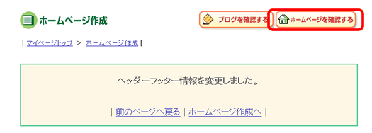 「ホームページを確認する」をクリックして、変更されたか確認してみましょう。