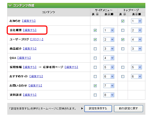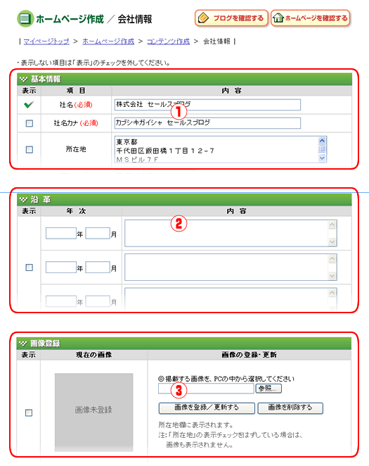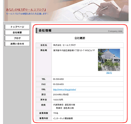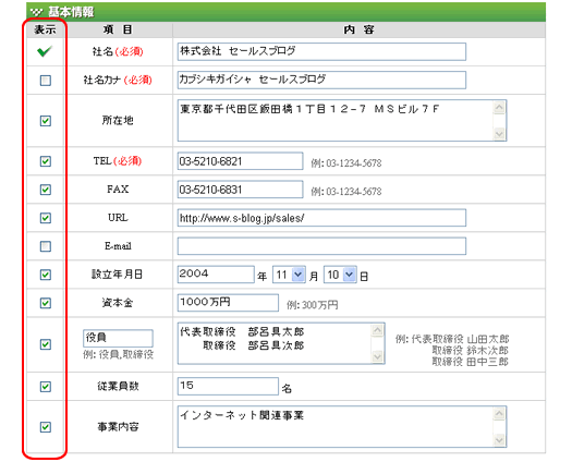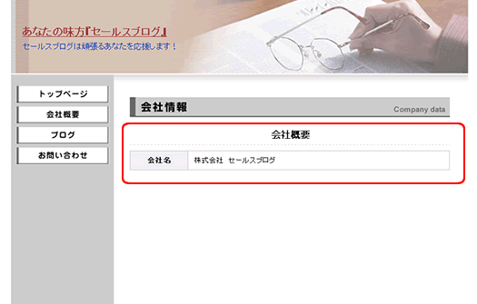 初期設定ではセールスブログの申込登録時に入力した会社名だけが掲載されています。