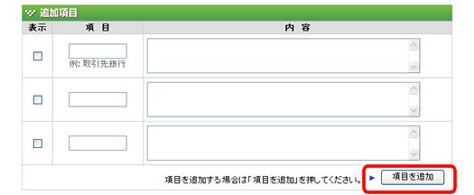 ・ さらに情報を追加したい場合は、追加項目の欄に入力します。