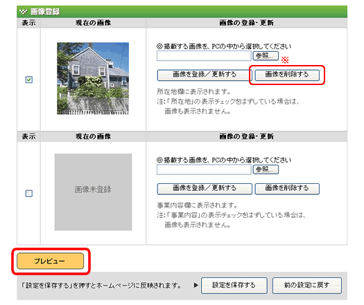 ※指定した画像を削除する場合は「画像を削除する」をクリックして削除して下さい。