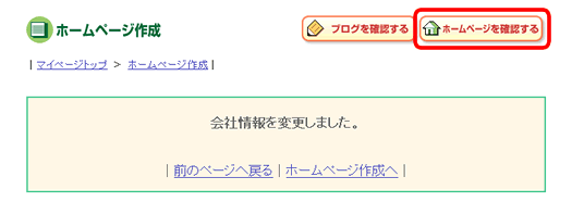 〔ホームページを確認する 〕をクリックしてホームページを確認してみましょう。
