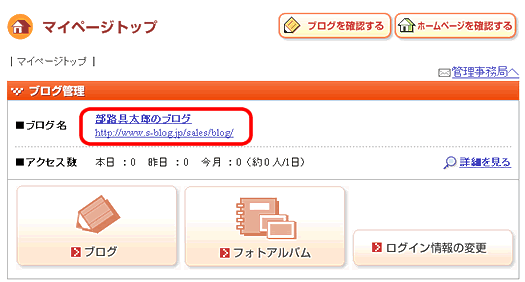 ・「マイページトップ」のブログ名をクリックしてください。あなたのブログが別ウィンドウで表示されます。