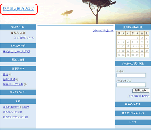 それでは、まずどんなブログが作成されているか見てみましょう。
