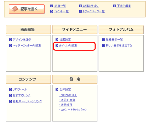 ・ サイドメニューの「タイトルの編集」をクリックします。