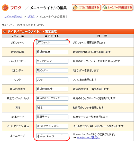 この欄で表示させたいタイトル名称を変更できます。