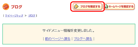 ・ 完了画面が表示されます。[ ブログを確認する ] ボタンをクリックしてブログを確認してみましょう。