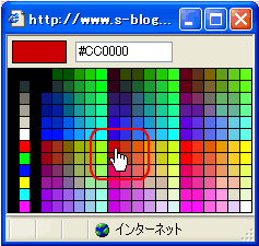 6.文字パレットのポップアップウィンドウが表示されるので、ここでは赤色をクリックします。